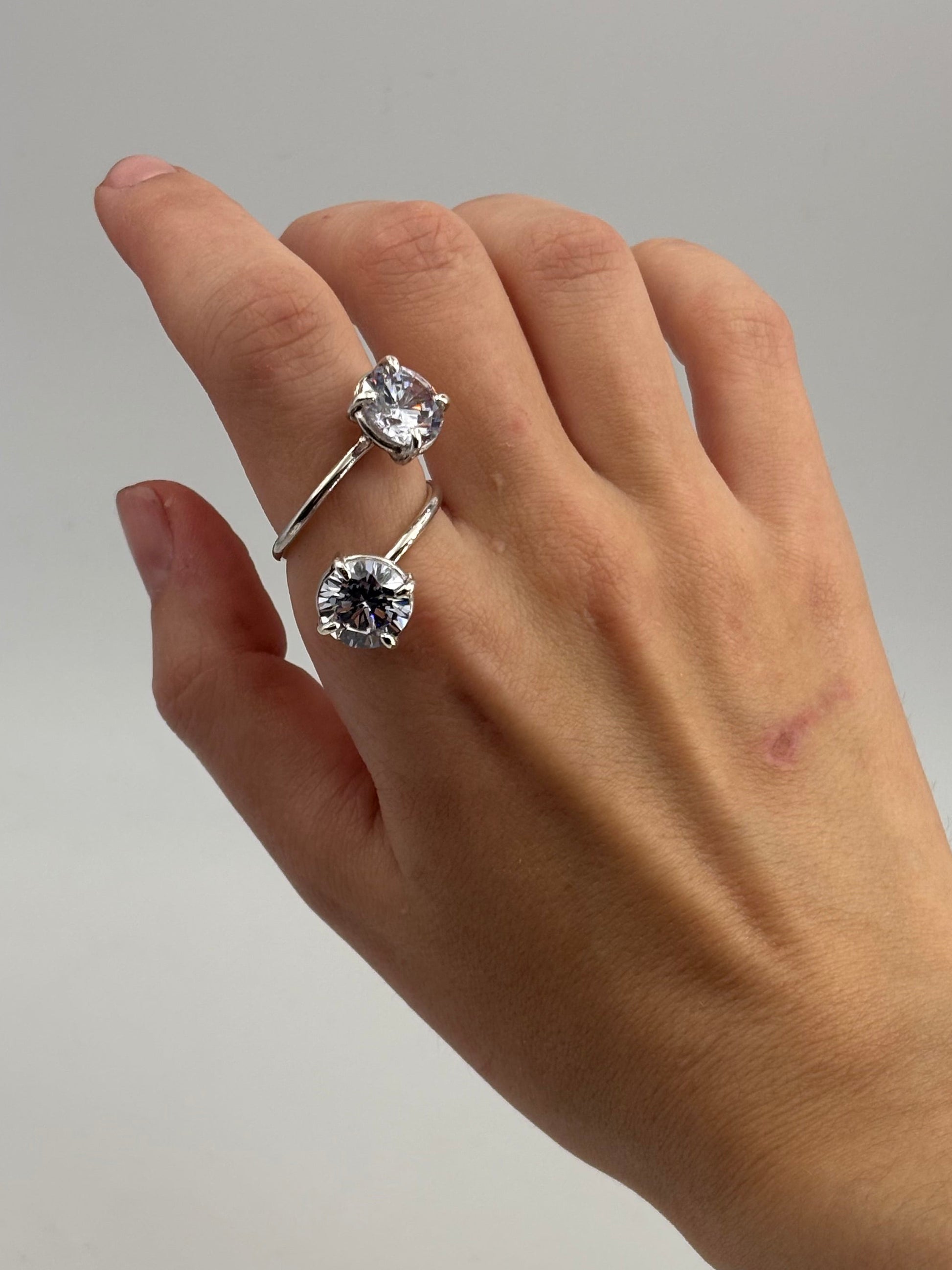 Ring made from 925 silver, 2 white cubic zircons